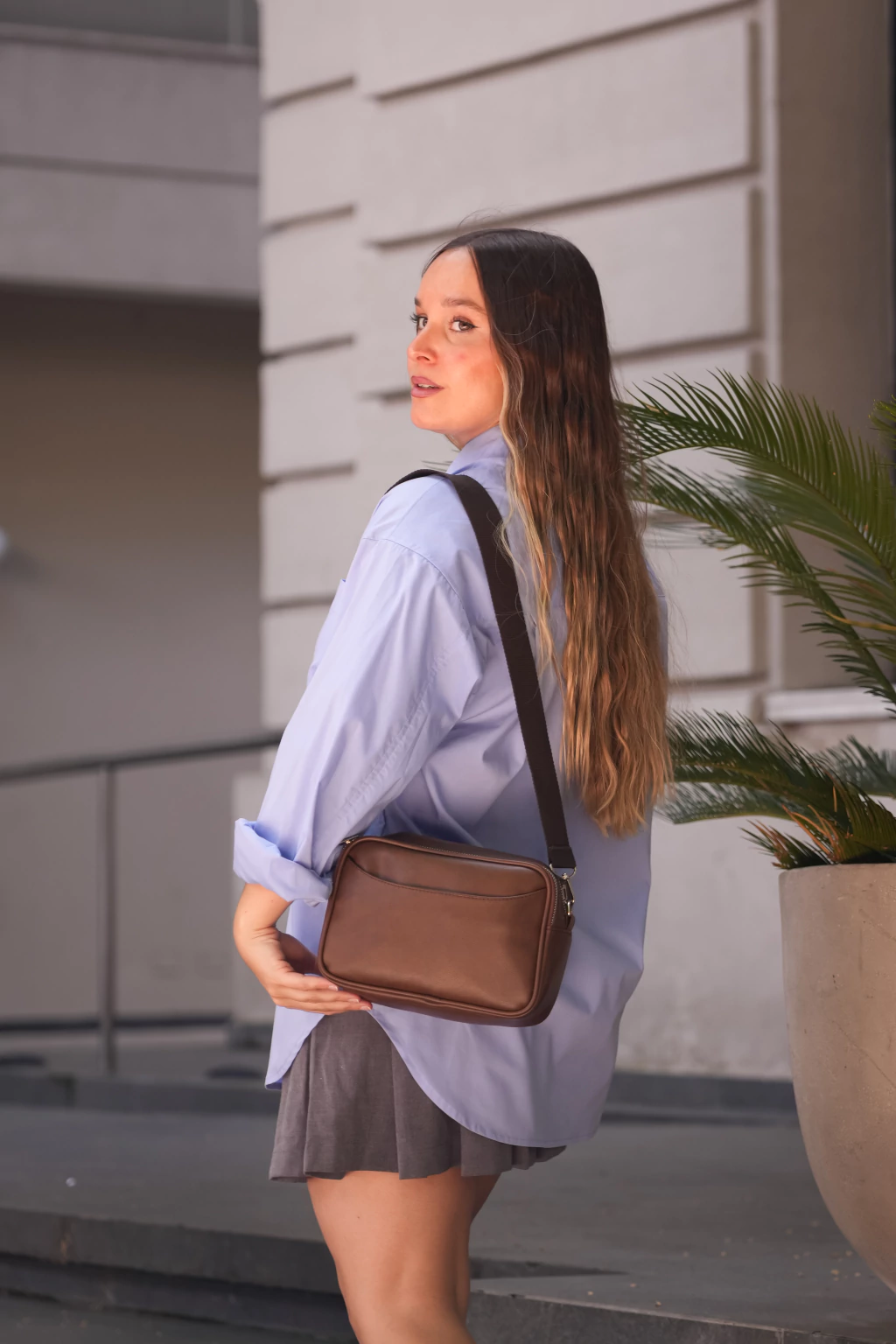 Tiene un bolsillo en la parte frontal y otra con cierre en la parte posterior