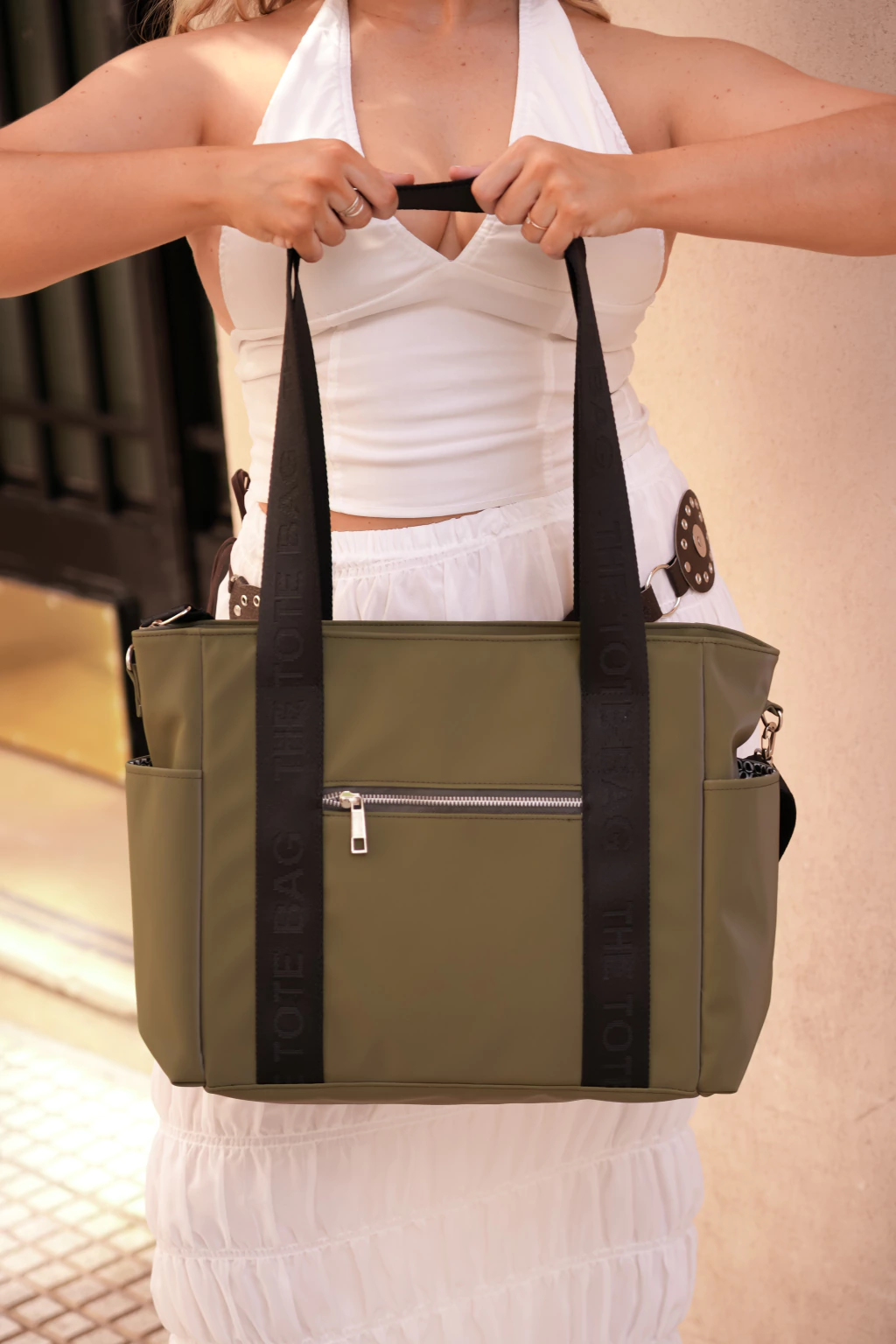 Tiras de las asas de cinta sublimada con detalle de letras TOTE .