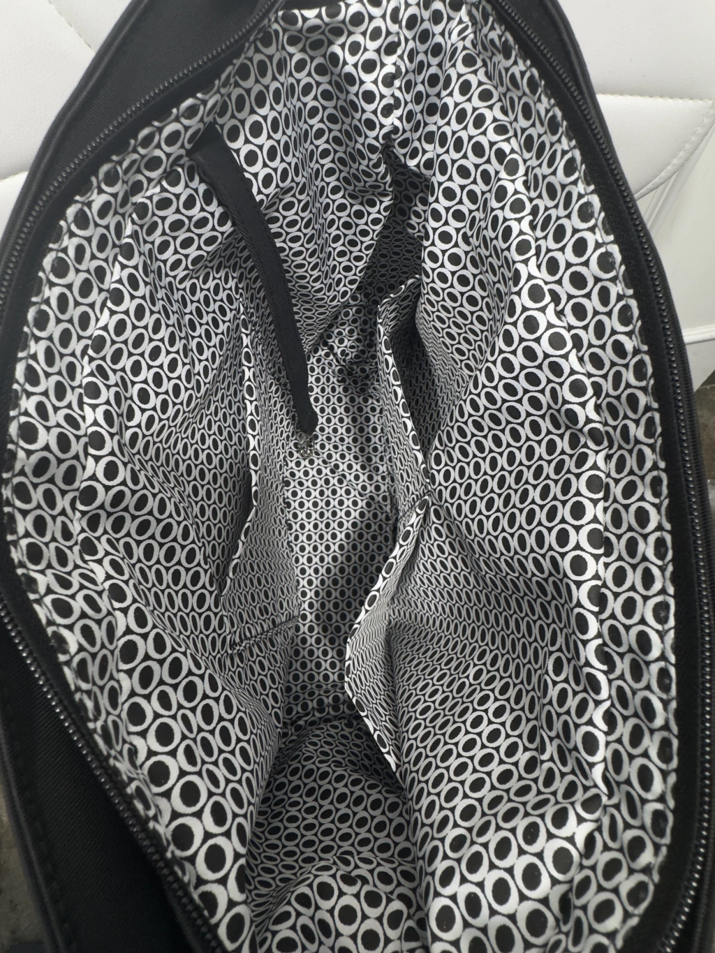Forrado de tela en su interior con 3 bolsillos.